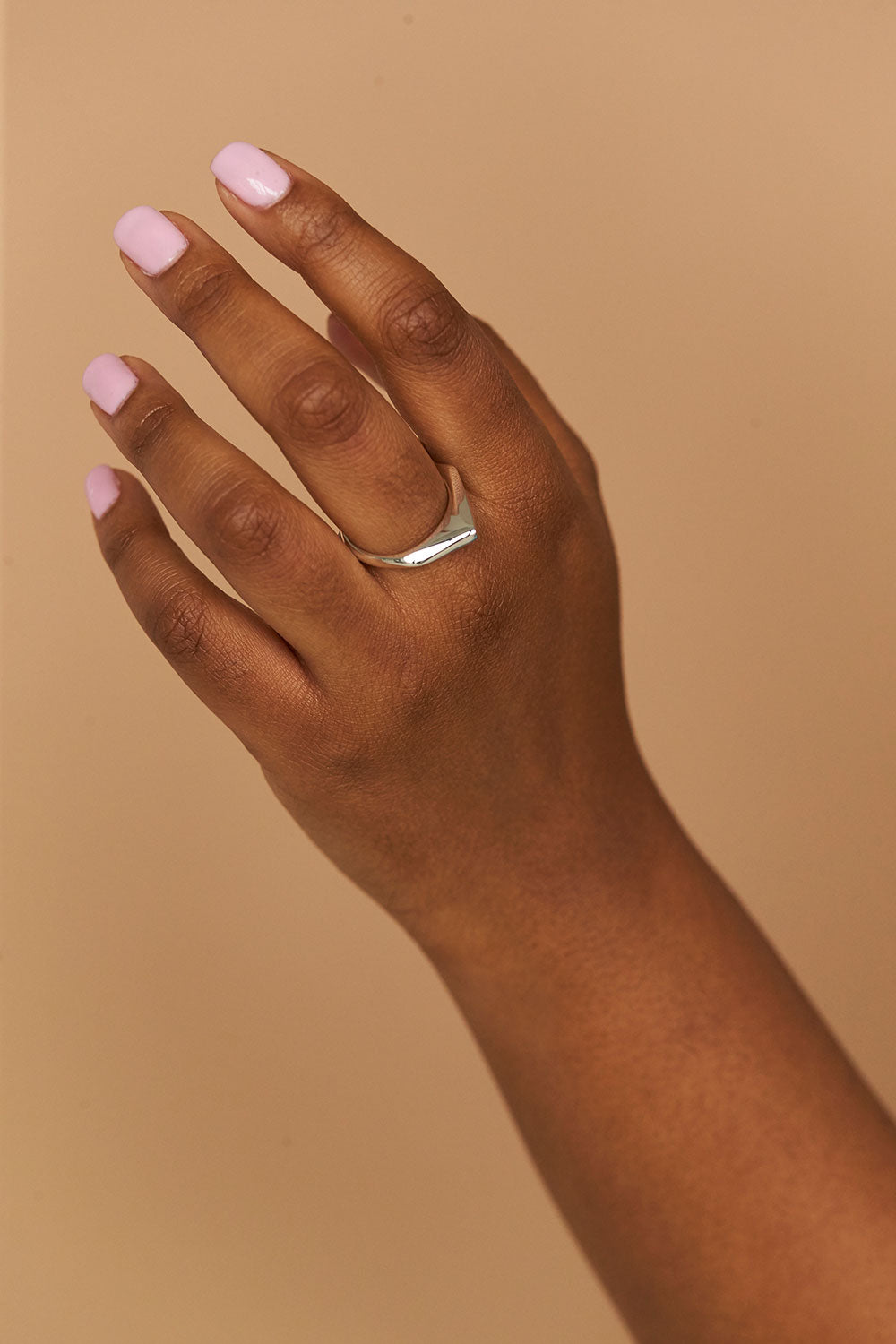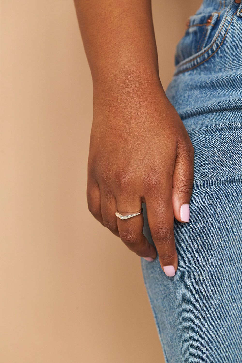 One of our favorite rings, the Jab packs a punch with a pointed top. Its curves and flat top edges make it a piece of wearable art. It is designed to be worn pointed up for confidence at all times.