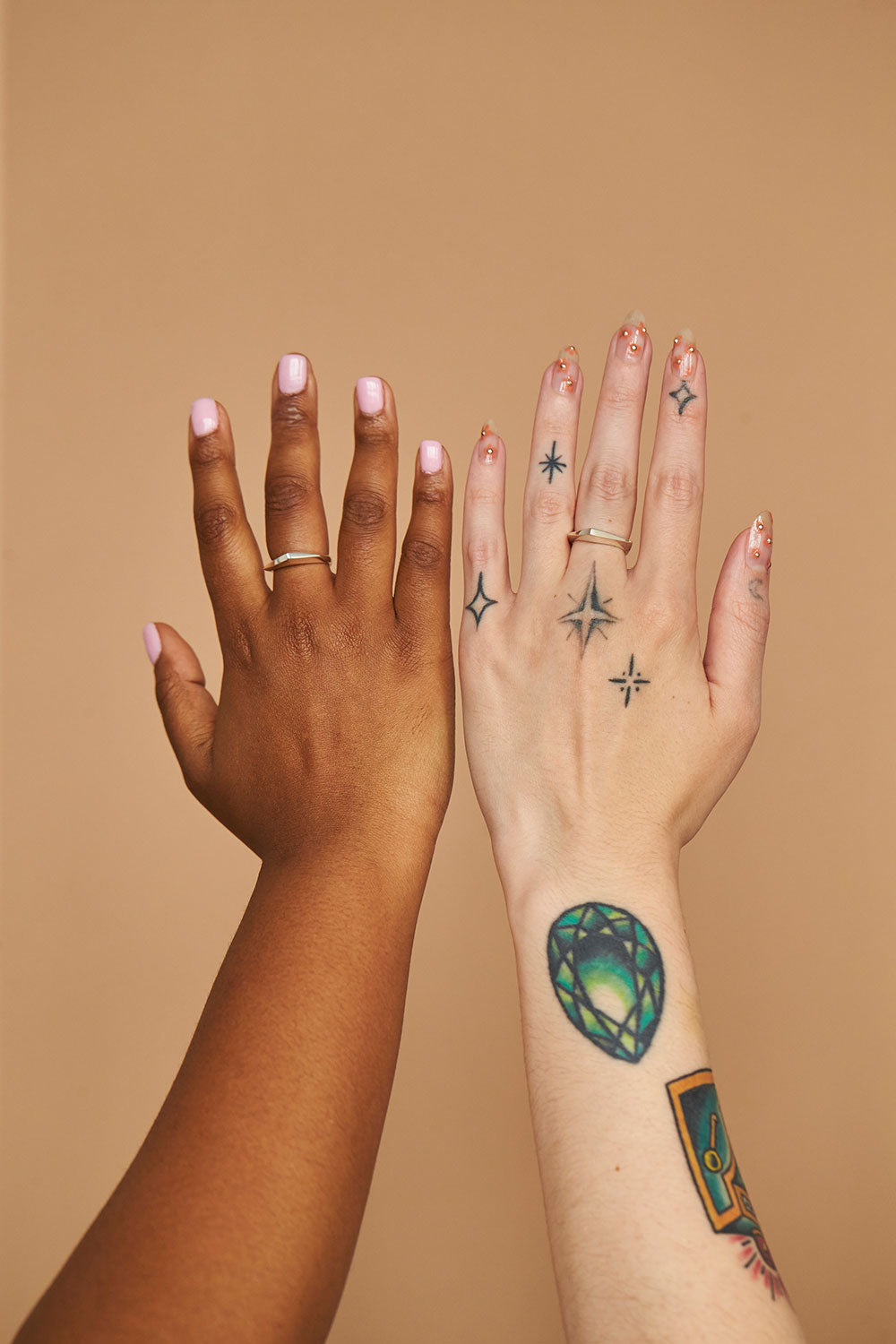 All our metal rings are cast and finished with a high polish by hand. We recommend removing rings before cleaning, washing dishes, and swimming to avoid tarnish and scratches. Any manual labor while wearing the rings may cause scratching, so be aware of that.