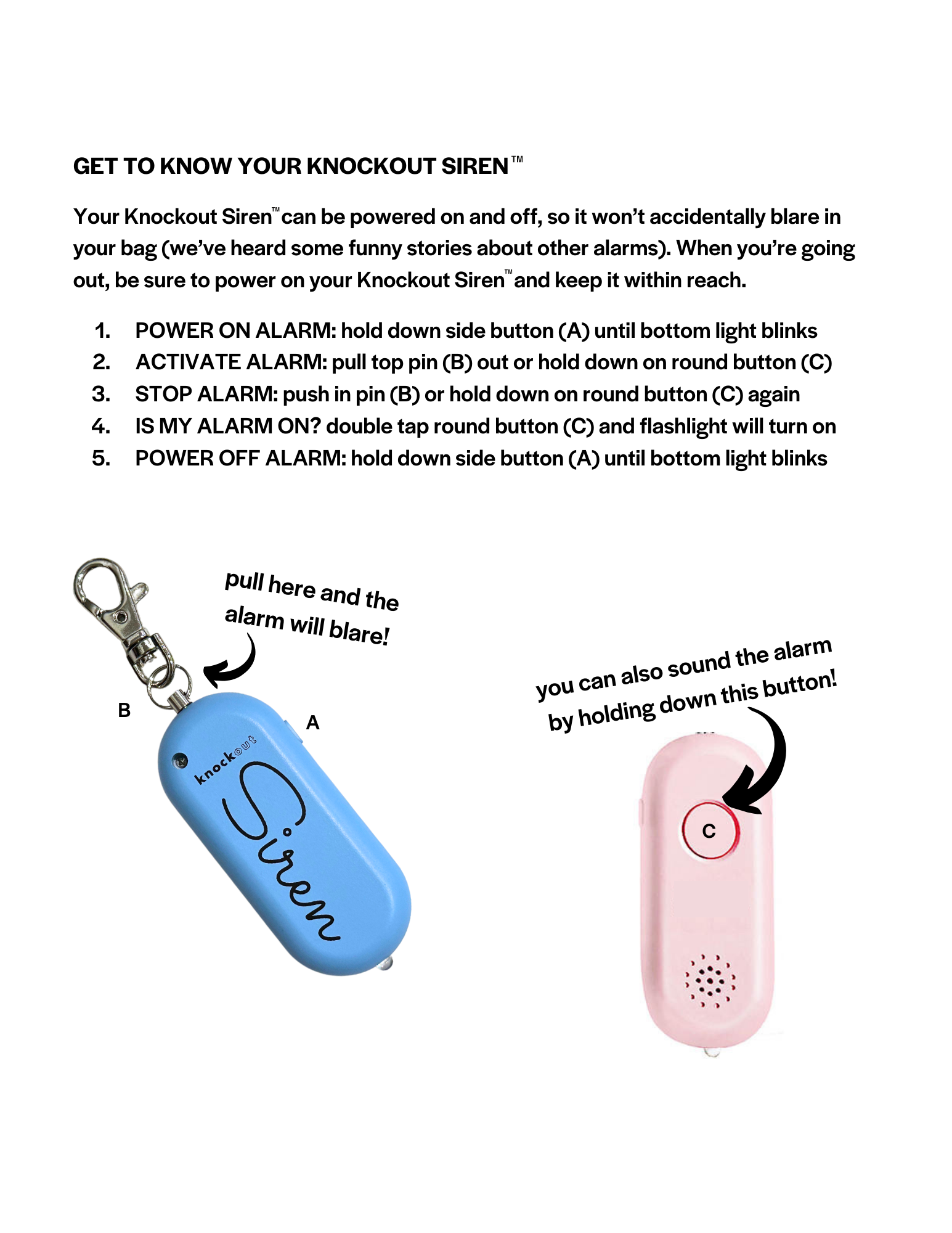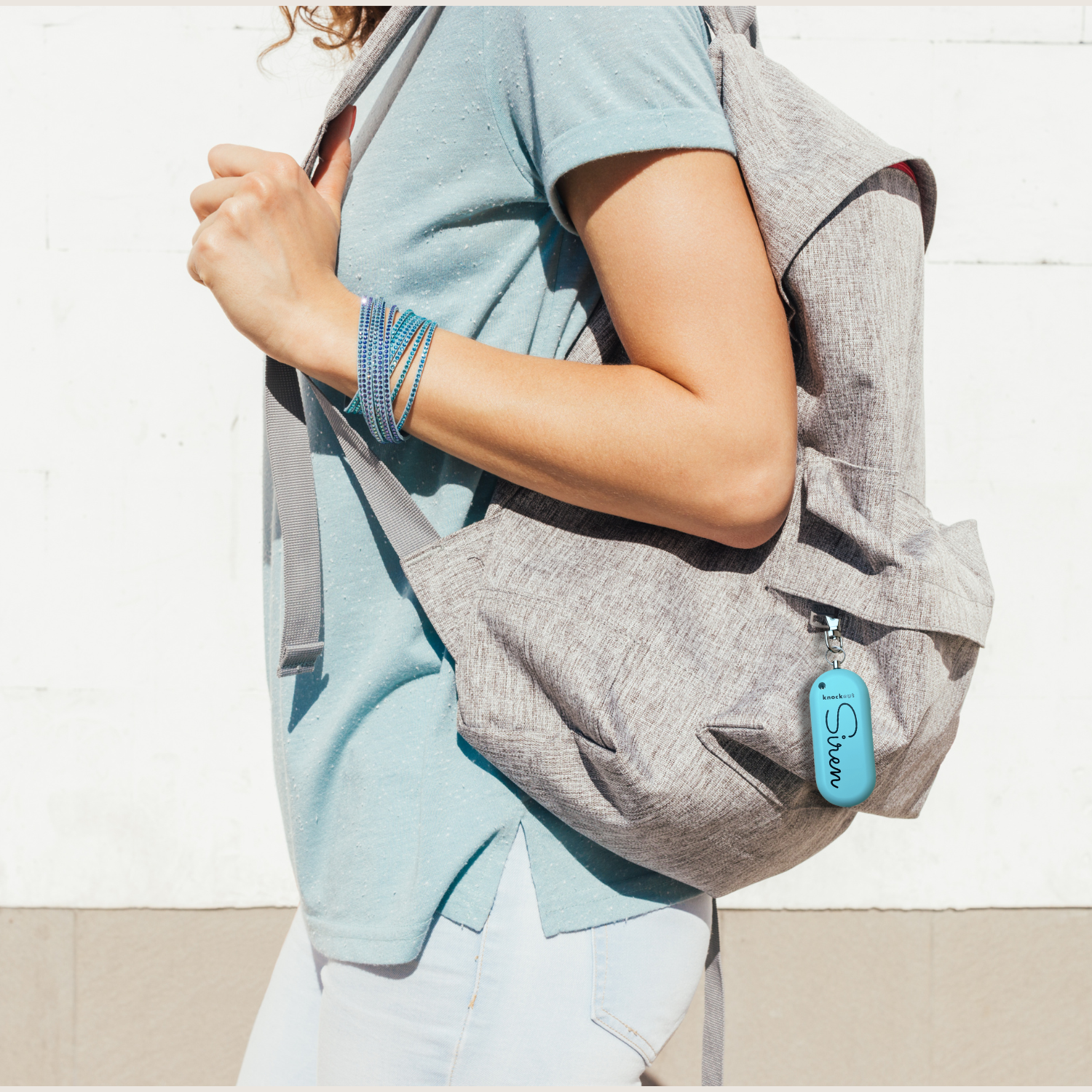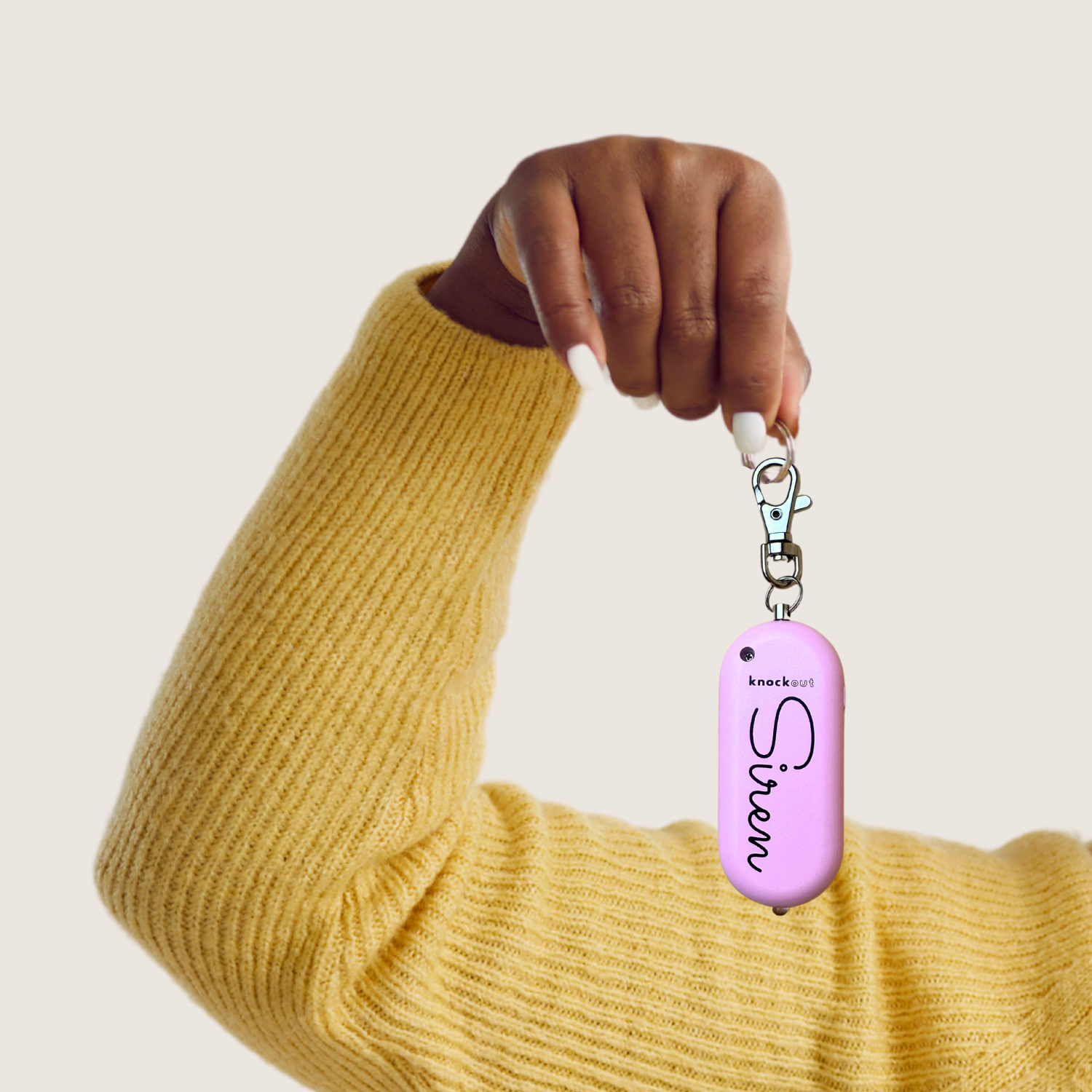 The Knockout Siren™ personal safety alarm is rechargeable, easy to use, loud, and TSA approved.