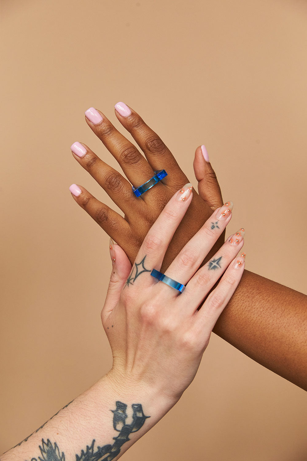 The Sea Blue TKO spans seasons and situations, from class or work to going out at night. With a quick flip, the flat surface points up for an empowering edge. We recommend wearing on the middle finger for comfort and efficacy.